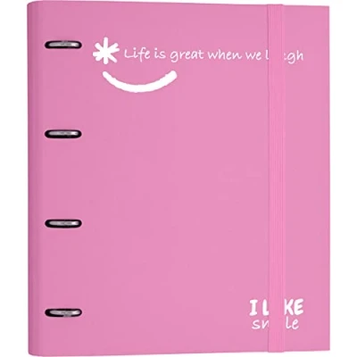 Grafoplás 88101353 4 Ring Binder with Refill, A4, Light Pink, FSC Paper Lined Cardboard, Includes Dividers, Carpebook Like Smile