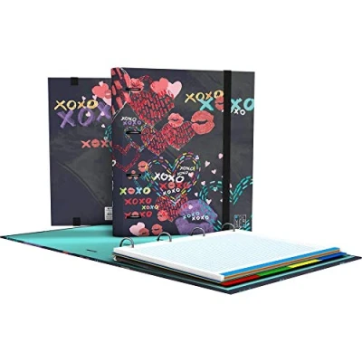 Grafoplás 88101998 A4 Rings 4 XOXO Model Collection Various Contains Extra Thick Dividers, 100 Sheets Squared 90g and Transparent Envelope