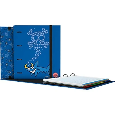 Grafoplás 88102633 4 Ring Binder with Refill Sheets, A4, 5 x Squares, Dividers, Transparent Envelope, Curved Spine, Carpebook, Katuki Saguyaki Collection, Shark