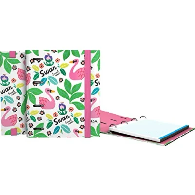 A5 Folder 4 Round Rings 25 mm Includes refill of 100 micro perforated sheets with 5mm grid and coloured edges Elena Corredoira Collection Swan Model Comfortable extra strong rubber closure, 15mm wide Curved spine, more ergonomic, perfect for taking your notes anywhere