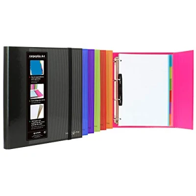 A4 4 x 25 mm mixed rings (D-shaped) Includes refill of 100 micro perforated sheets with 5mm grid and 90g colour edges Comfortable extra strong vertical rubber closure, 15mm wide Curved spine, more ergonomic, perfect for taking your notes anywhere Covers lined with FSC certified blue paper