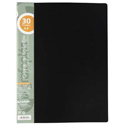 Grafoplás 98141110 Elite Folders with Sleeves, 30 Transparent Semi Rigid Covers, Black, A4