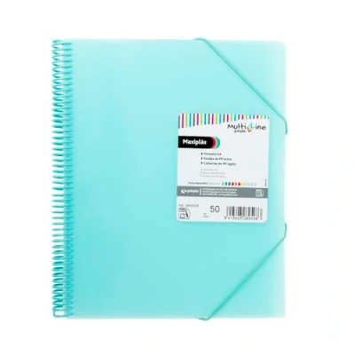 Grafoplás A4 Plastic Folder, 50 Transparent Sleeves, Mint Green, Extra Polypropylene, PVC Spiral, Multiline Maxiplas, Perfect School and Office Supplies