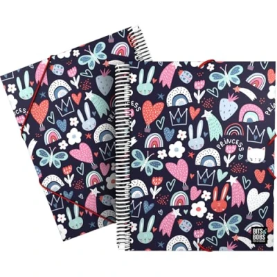 Grafoplas A4 Plastic Folder, Flexible Cover, Spiral Bound, PVC, 30 Polypropylene Inserts, Collection Design Bits&Bobs Pop Up Princess, Maxiplas, Perfect School Supplies