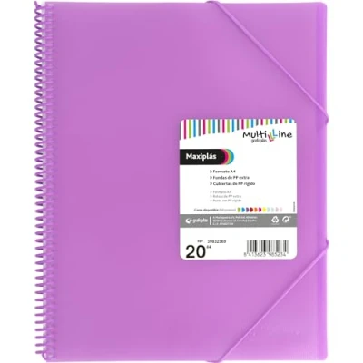 Grafoplás A4 Plastic Folder Lavender 20 Extra Polypropylene Pockets Flexible Covers PVC Spiral Maxi Multiline Perfect as School and Office Supplies