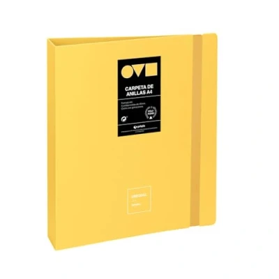 Grafoplas A4 Ring Binder 4 D Rings 40 mm Minimal Unequal Yellow 360 Opening Durable and Ultralight Polyfoam Recyclable Perfect for Archiving School Documents