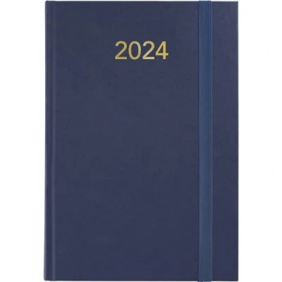 Grafoplás Agenda 2024 Economy Navy Blue 14.5 x 21 cm Padded Vinyl Covers Vertical Closure Rubber Reading Point Annual Florence Series