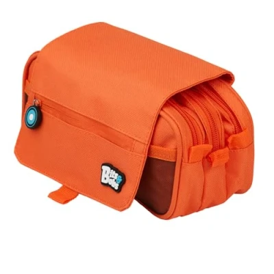 Case dimensions: 23 x 10 x 10 cm Triple pencil case with zip closure and front flap Pull on the back for hanging the pencil case; perfect for school With reinforced rib on the front and back and foam inside each pocket Orange pencil case with round pulls with rubber logo on zippers