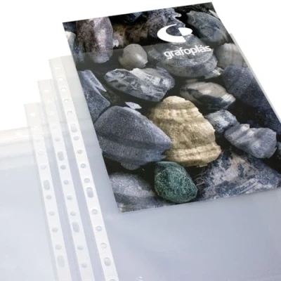 Grafoplás Box of 100 Glass Plastic Sleeves Folio Size Standard Quality Polypropylene Reinforced Spine 16 Drills Perfect as School and Office Supplies