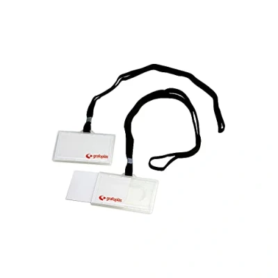 Flexible PVC holder Cord in black fabric. Dimensions: 90 x 55 mm.