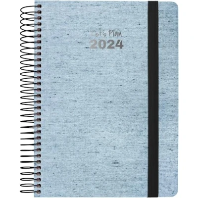 Ecojeans 2024 Year Planner with Day to View, Hardcover Lined in Blue Recycled Denim, Rounded Corners and Spiral Binding. High durability: Made in Spain with rigid cardboard covers lined with denim, metallic spiral binding in black. Perfect size: Its measurements of 15 x 21 cm make it perfect to carry it at all times with you and have the space you need and its elastic band ensures that you do not lose any of your notes. Maximize your organization: Day view for working days and a sheet for Saturday and Sunday on 70g FSC certified white paper with 2-ink printing Extras for your planning: You have a space for personal identification, three-year calendar, annual planning, list for your contacts, Santoral and titles in box languages: Spanish, Catalan, Galician and Basque.