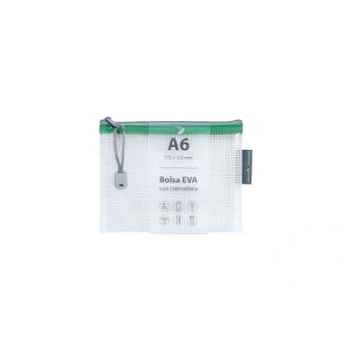 Grafoplás EVA A6 Zip Bag Made with Transparent Foam Green Zipper 17.5 x 12.5 cm Ideal for Transporting All Kinds of Items, Small Documents or School Supplies