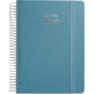 2025 FANCY DESIGN DIARY - This yearly planner features a daily view, petrol blue fabric lined cover, rounded corners, silver spiral binding and vertical closure rubber Care for the Planet: Made in Spain following the highest quality standards and FSC certified, this diary has a high resistance to daily use and is environmentally friendly PERFECT SIZE: Measures 15 x 21 cm, measures that allow you the space you need to organize your personal or professional life, while you can take it anywhere with you ATTRACTIVE AND FUNCTIONAL: Printed in 2 inks on 70g white paper, it offers great readability that facilitates your daily organization, its paper is lightweight while not bleeding through Extras for your planning: You have 2 pages of stickers to highlight everything you need, three-year calendar, annual planning and titles in 4 languages: Spanish, Catalan, Galician and Basque.