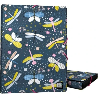 Grafoplas Folder 3 Flaps, Lined Cardboard, Hard Cover, Foolscap Size, Dragon Fly Design, Bits & Bobs Pop Up Soft Laminated, to The Touch, FSC Certified, Ideal as School Supplies