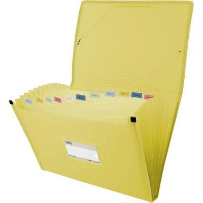 Grafoplas Folder Bellows, Foolscap Size, Yellow, 13 Positions, Semi Rigid Poly Opaque, Includes Label for Viewers, Perfect File School and Office Documents