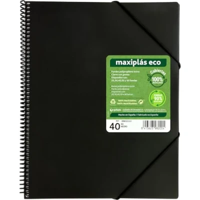 100% Recycled Materials: The flexible covers of this Maxiplás ECO folder with sleeves are made with 100% recycled polypropylene, promoting the care of the environment HIGH QUALITY TRANSPARENT COVERS - Includes 40 polypropylene sleeves, made with 90% recycled material, that protect and allow for easy viewing of documents. SECURE ELASTIC CLOSURE - This file folder is designed with a convenient elastic band closure that keeps your documents safe and organized. BONUS ENVELOPE INCLUDED - Comes with an extra envelope for storing loose documents, cards or important notes, offering more versatility and a convenient adhesive textile closure Multifunctional filing cabinet: Ideal for everyday use in offices, schools and home, facilitating efficient management. Store your notes, sheet music, bills and other important papers