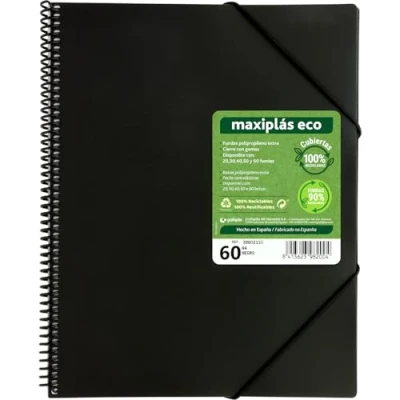 100% Recycled Materials: The flexible covers of this Maxiplás ECO folder with sleeves are made with 100% recycled polypropylene, promoting the care of the environment HIGH QUALITY TRANSPARENT COVERS - Includes 60 polypropylene sleeves, made with 90% recycled material, that protect and allow for easy viewing of documents. SECURE ELASTIC CLOSURE - This file folder is designed with a convenient elastic band closure that keeps your documents safe and organized. BONUS ENVELOPE INCLUDED - Comes with an extra envelope for storing loose documents, cards or important notes, offering more versatility and a convenient adhesive textile closure Multifunctional filing cabinet: Ideal for everyday use in offices, schools and home, facilitating efficient management. Store your notes, sheet music, bills and other important papers
