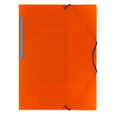Semi-rigid translucent polypropylene three-flap binder Closure with elastic bands with labelable spine Folio size and translucent orange color Perfect for organizing documents