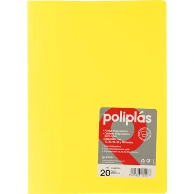 Grafoplás Polyplás Opaque Folder: Designed with 20 standard quality transparent sleeves and semi-rigid polypropylene covers, ideal for organising and protecting A4 documents. High Durability: Covers made of semi-rigid opaque polypropylene, which offers perfect strength for everyday use. Their covers are of standard quality and finished in orange leather SMART DESIGN: Sleeves are welded to the spine, ensuring documents stay firmly in place without risk of falling or slipping. Made in Spain: This portfolio is manufactured to high quality standards, highlighting durability, unique design and confidence in products of European origin Color and Capacity: Features an attractive yellow color and has a capacity of 10 sleeves, offering enough space for organizing a4 sized papers and documents.