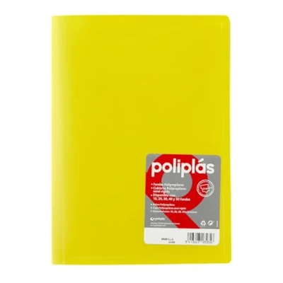 Grafoplás Polyplás Opaque Folder: Designed with 30 standard quality transparent sleeves and semi-rigid polypropylene covers, ideal for organising and protecting A4 documents. High Durability: Covers made of semi-rigid opaque polypropylene, which offers perfect strength for everyday use. Their covers are of standard quality and finished in orange leather SMART DESIGN: Sleeves are welded to the spine, ensuring documents stay firmly in place without risk of falling or slipping. Made in Spain: This portfolio is manufactured to high quality standards, highlighting durability, unique design and confidence in products of European origin Color and Capacity: Features an attractive yellow color and has a capacity of 10 sleeves, offering enough space for organizing a4 sized papers and documents.