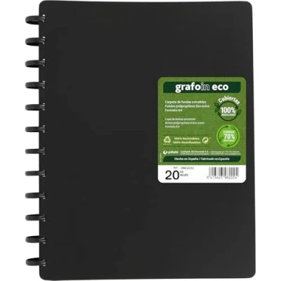 Grafo In System: This A4 cover book has a Grafo In disc system for binding your 20 smooth plastics, which allows you to easily insert or change them in position ECO-FRIENDLY & SUSTAINABLE - Made with 100% recycled hardtop lids and 70% recycled plain polypropylene linings, this portfolio is an eco-friendly choice if you care about the environment. Durability and Strength: Rigid covers provide robust protection to your documents, while extra quality polypropylene liners ensure long lasting durability PERFECT FOR STANDARD DOCUMENTS - This sleeve file has a size of 316x244mm, which is perfect for classifying standard a4 documents. Versatility of Use: Ideal for A4 documents, this folder is perfect for school, college, professional or home use, making it easy to organize reports, presentations and projects.