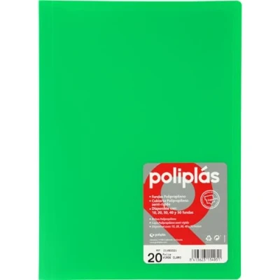 Grafoplas I Folder with Plastic Sleeves 20 Transparent Green Folio Size Series Polyplas Opaque Made in Spain Flexible Covers Large Storage Capacity