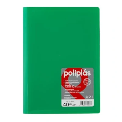 Grafoplas I Folder with Plastic Sleeves 40 Transparent Green Folio Size Series Polyplas Opaque Made in Spain Flexible Covers Large Storage Capacity