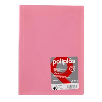 Description and Use: Grafoplás Polyplás Opaque folder, designed with 40 transparent sleeves of standard quality, ideal for organizing and protecting fool-sized documents. Material: Covers made of semi-rigid opaque polypropylene, offering durability and resistance suitable for everyday use and covers with extra quality polypropylene and finished in orange leather Design: Sleeves are welded to the spine, ensuring documents stay firmly in place without risk of falling or slipping. Origin: Product made in Spain, guaranteeing a quality standard and local production. COLOR & CAPACITY: Features an attractive pink color and has a capacity of 40 sleeves, offering enough space for organizing important papers and documents.