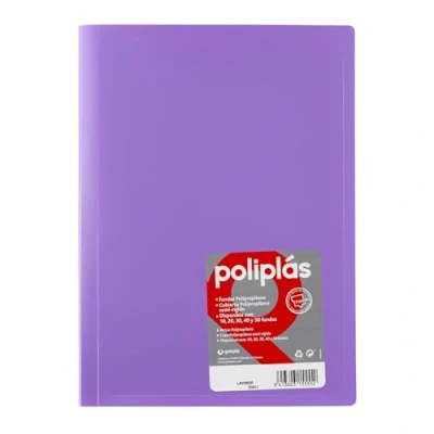 Description and Use: Grafoplás Polyplás Opaque folder, designed with 40 transparent pockets of standard quality, ideal for organising and protecting A4 documents. Material: Covers made of semi-rigid opaque polypropylene, offering durability and resistance suitable for everyday use and covers with standard quality polypropylene and finished in orange leather Design: Sleeves are welded to the spine, ensuring documents stay firmly in place without risk of falling or slipping. Origin: Product made in Spain, guaranteeing a quality standard and local production. COLOR & CAPACITY - Features an attractive lavender color and has a capacity of 40 sleeves, offering enough space for organizing important papers and documents.