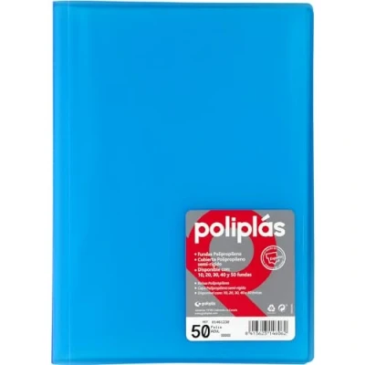 Grafoplas I Folder with Plastic Sleeves 50 Transparent Folio Size Blue Soft Series Poliplas Translucent Made in Spain Large Storage Capacity
