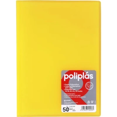 Description and Use: Grafoplás Poliplás Translucent folder, designed with 50 extra quality transparent pockets, ideal for organizing and protecting folio-size documents. Material: Covers made of semi-rigid translucent polypropylene, which offers durability and resistance suitable for everyday use and polypropylene covers with extra quality and finished in orange leather. Design: Sleeves are welded to the spine, ensuring documents stay firmly in place without risk of falling or slipping. Origin: Product made in Spain, guaranteeing a quality standard and local production. Color and Capacity: Features an attractive sof yellow color and features a capacity of 50 sleeves, offering enough space for organizing important papers and documents.