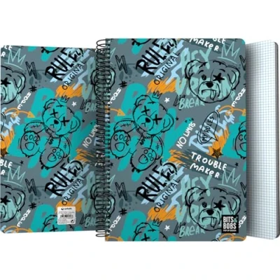 Grafoplás Plastic Cover Notebook, Bits&Bobs Bear, 80 Squared Sheets 4x4 90g, Foolscap Size, Spiral, Coil Lock Security Closure, FSC Certified, Perfect School Supplies