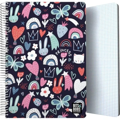 Grafoplás Plastic Cover Notebook, Bits&Bobs Princess, 80 Squared Sheets 4x4 90g, Foolscap Size, Spiral, Coil Lock Security Closure, FSC Certified, Perfect School Supplies