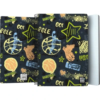 Grafoplás Plastic Cover Notebook, Bits&Bobs Streetball, 80 Squared Sheets 4x4 90g, Foolscap Size, Spiral, Coil Lock Security Closure, FSC Certified, Perfect School Supplies