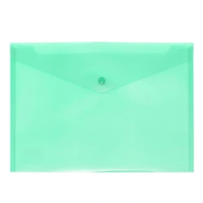 Transparent plastic envelope folder with mint colour click closure This envelope is made of strong and durable translucent polypropylene, perfect for protecting quartet size documents These envelope-style folders have a convenient snap closure, which will keep documents safe from misplacement For fourth documents: These envelopes are designed to protect quarter documents. Measures 17.5 x 24.5 cm This folder is perfect for both early stage schoolchildren, older students and professionals who need to take their documents anywhere, perfectly protected