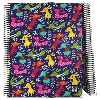 Grafoplás Portfolio with Sleeves Spiral A4 30 Transparent Liners Polypropylene Flexible Caps Includes Zipper Envelope Dogs Party, Bits&Bobs Pop Up Design