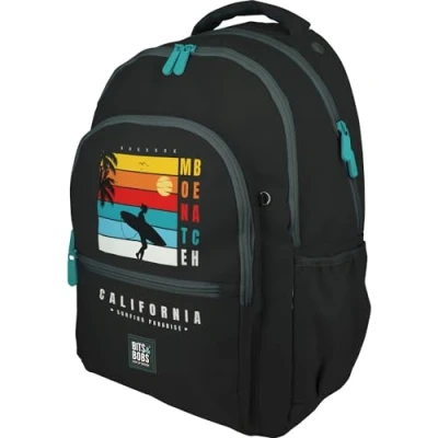 Grafoplás School Backpack Three Compartments 33 x 46 22.5 cm Padded Laptop Area Roomy Model California Design Bits&Bobs Pop Up Perfect for Supplies, Black/White,