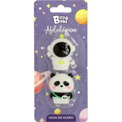 Grafoplas Set of 2 Bits&Bobs Astro Panda Pencil Sharpener, with Steel Blade, Perfect School Pack for Back to and Birthday Children's Parties