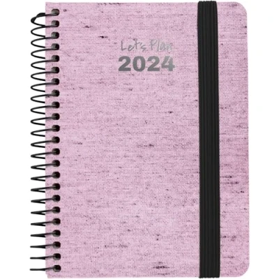 ECOJEANS DESIGN DIARY - 2024 Yearly Planner with Week to View Organization, Hardcover Lined in Pink Recycled Denim Fabric, Rounded Corners and Spiral Binding. High durability: Made in Spain with rigid cardboard covers lined with recycled denim fabric and metallic spiral binding in black Pocket size: This small diary has an a6 size and measures 10.5 x 15 cm make it perfect to carry it in any bag or backpack and have it at all times with you. WEEKLY ORGANIZATION - Features a weekly view organization that makes it easy to have all your weekly goals and tasks at a glance. Each day there is a lined space for taking notes on the 70g FSC certified white paper with 2-ink printing. Extras for your planning: You have a space for personal identification, three-year calendar, annual planning, list for your contacts, Santoral and titles in box languages: Spanish, Catalan, Galician and Basque.