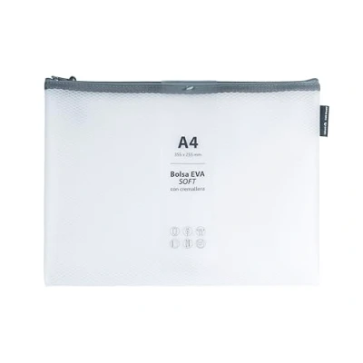 Grafoplás Zip Bag EVA Soft a4 White Touch Zipper Made with Transparent Rubber Perfect for Protecting and Transporting Documents, Mobiles, Tablets or Puzzles
