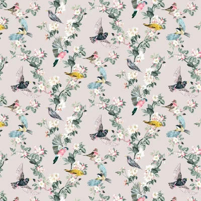 WallpaperDirectAn elegant paper featuring bright beautiful garden birds amongst flowers. Shown in the antique creme colourway.