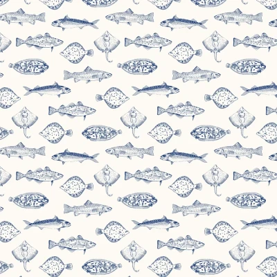 WallpaperDirectA delicate coastal paper featuring various fish. Shown in the coast blue colourway.