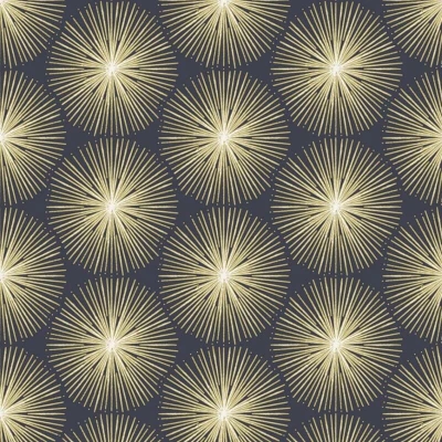 General description This amazing wallpaper features a bold, abstract geometric starburst pattern inspired by fireworks. The circles are comprised of radiating lines that create a sense of depth and dimension. This simple design would really make a statement on all walls. Technical specifications Roll Size: 10.05m x 0.52m Coverage: 5.2msq (56 sq.ft) Pattern Repeat: 64cm Straight match Colour: Navy Blue Gold Classification: Extra Washable, Good Light Fastness, Strippable Installation How To Apply: Paste The Wall Important Information: Always read and adhere to the manufacturer's labels for instruction. Please order enough rolls to complete your job as batch numbers cannot be guaranteed on a subsequent purchase.