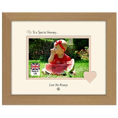 Grampy Photo Frame Special Love You Always Double Mounted Quality Gift (Oak Finish Cream Mount Beige Inside)