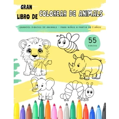 Gran Libro de Colorear Animales: Grandes dibujos animales para niños a partir 2 años