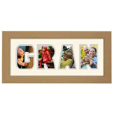 Gran Photo Frame Word Light Oak Wood Finish Birthday Picture Gift Present