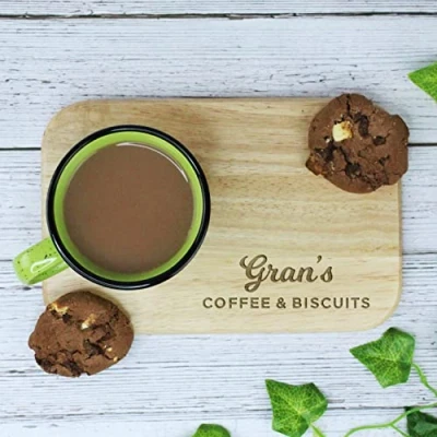 Our engraved Coffee & Biscuits Board makes the perfect gift for Gran for their birthday, Mother's Day or Christmas this year. We are sure that this unique Coffee & Biscuits Board will get plenty of use, to indulge with a well deserved Coffee and biscuits every morning! Perfectly paired with her favourite biscuits, we are sure it will go down a treat! If you are on the hunt for a beautifully personalised mother's day gift to show Gran just how much she is appreciated, one of these custom engraved Coffee & Biscuit Boards will perfectly serve the purpose. Dimensions: 23 x 15 cm