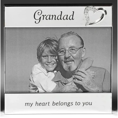 General description Shatchi Grandad 'My heart belongs to you' Silver Message Band Photo Frame is a beautiful and sentimental way to display cherished memories. This elegant frame features a silver message band that adds a personal touch, making it a perfect gift for Grandad on special occasions or just to show appreciation.