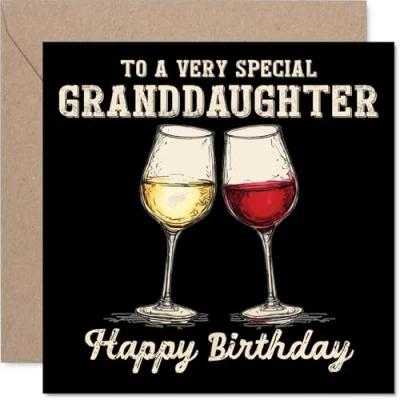 Granddaughter Birthday Card Bday Wine Happy for from Grandad Grandma, 145mm Greeting Cards