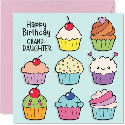 Granddaughter Birthday Card Cupcakes Happy for from Grandad Grandma, 145mm Fairy Cake Baking Bday Greeting Cards